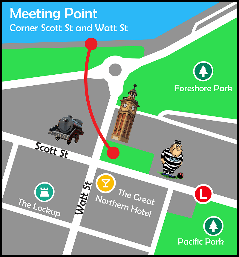 Please arrive 10-15 minutes before the scheduled start time of your tour at the corner of Scott St & Watt St, Newcastle.