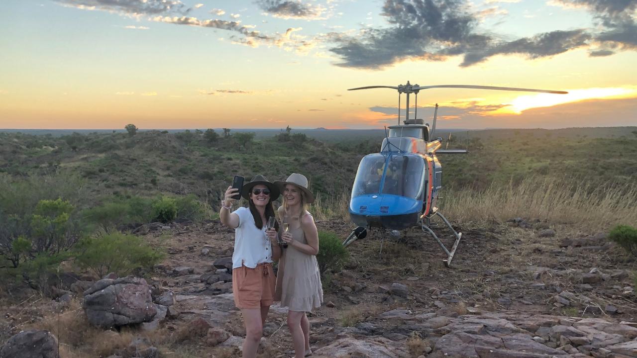This incredible experience showcases the most stunning scenery the Katherine region has to offer. Flying along the Katherine River to the Katherine Gorge we then fly over ALL 13 of the stunning sandstone Gorges within the Nitmiluk National Park. Afterwards, we head north up 17 mile valley to the spectacular falls of Biddlecombe Cascades. We then track to our remote helipad, landing on the top of an impressive sandstone gorge, which we call, Hilly’s Hill.