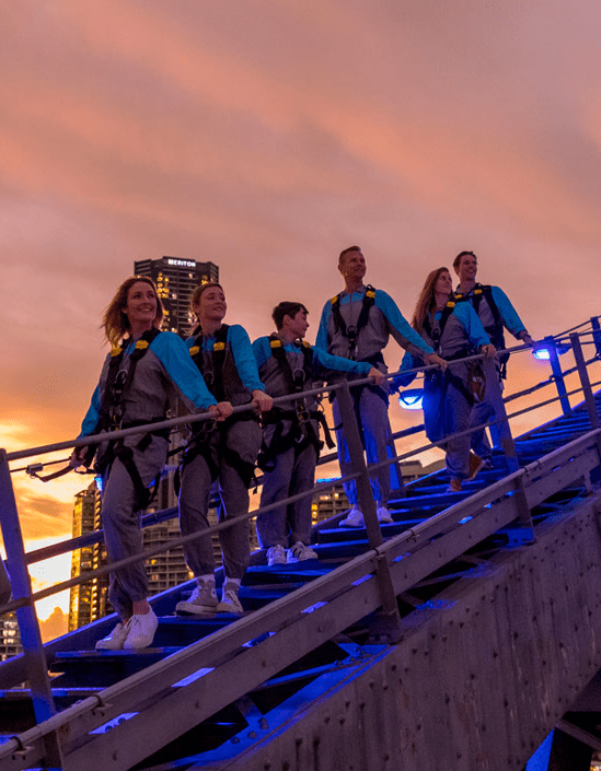 The ultimate climb time begins as the day ends. Twilight captures the perfect balance as the sun sets on the horizon and the city comes to life with lights. Descend under the warm glow of the ever-changing Story Bridge